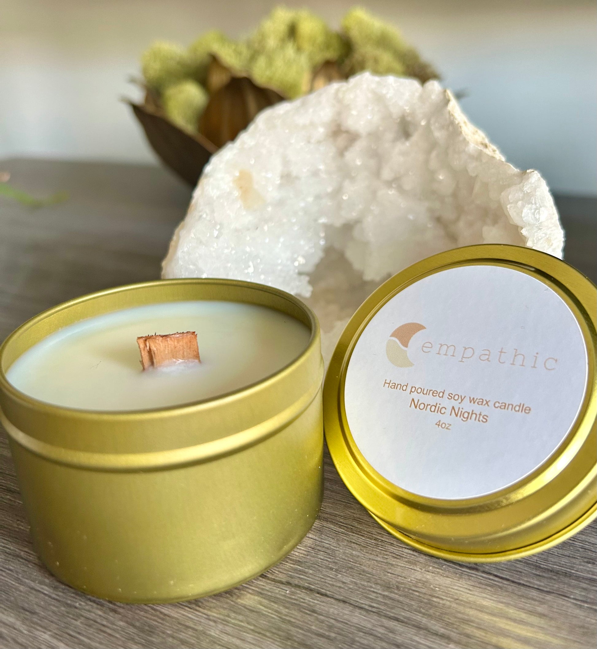 Empathic Private Label Nordic Nights Candle – 4oz Wood Wick Tin