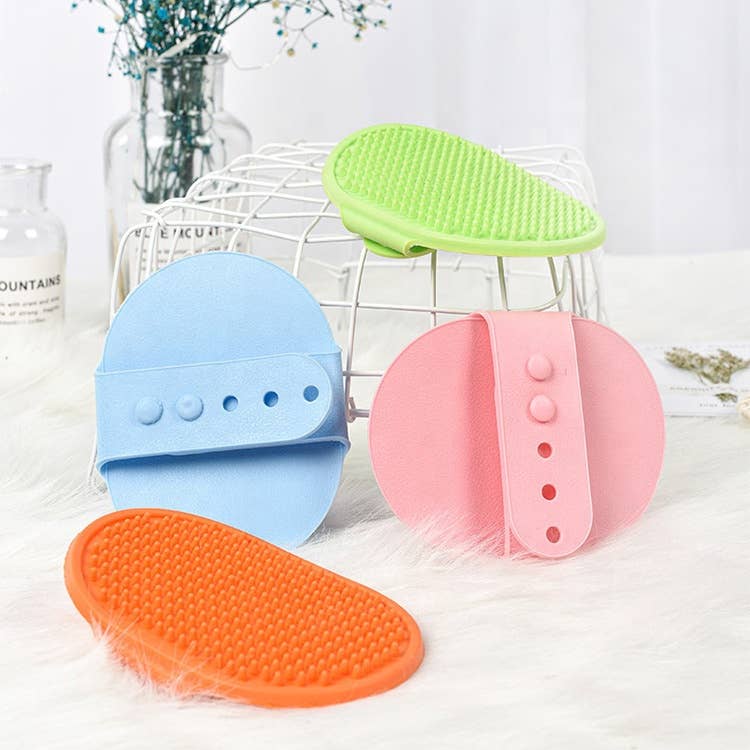 Massage brush for your dog or cat! Available in Pink or Blue. This perfectly palm sized brush with soft, but sturdy silicone bristles, gets the job done! Lightweight, durable, breathable, soft.