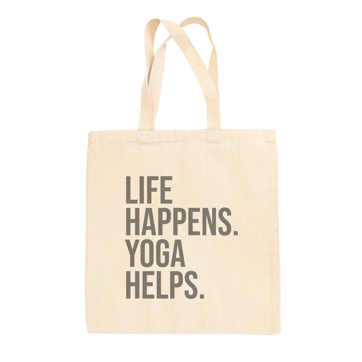 Carry your practice with you wherever you go — this sturdy cotton tote is screen-printed with the reminder “Life Happens, Yoga Helps.” Perfect for groceries, books, yoga gear, or everyday essentials.