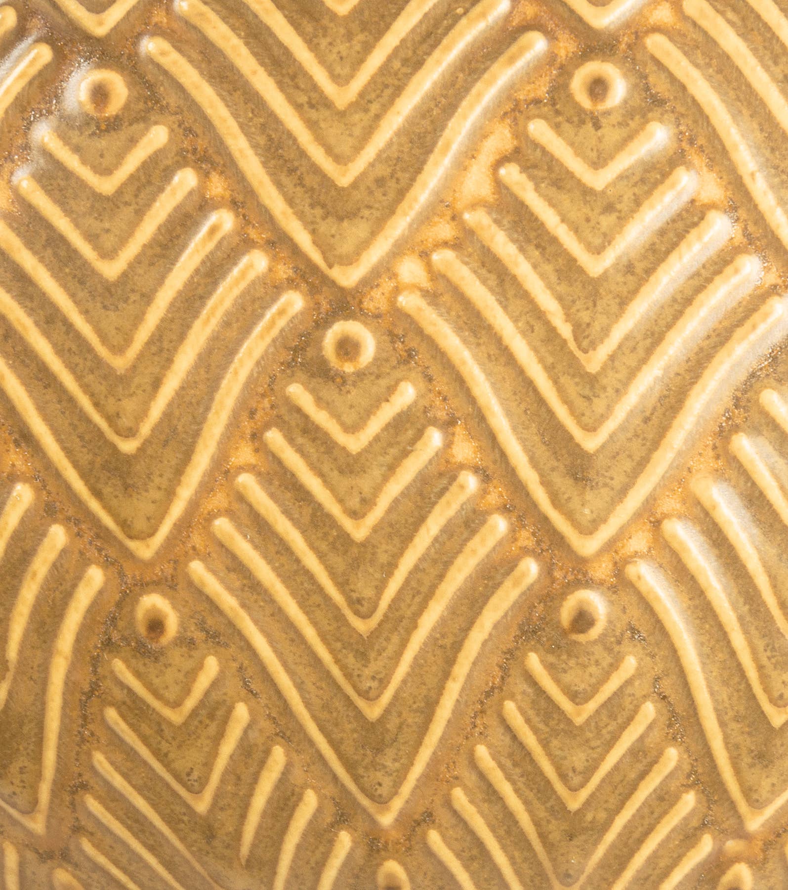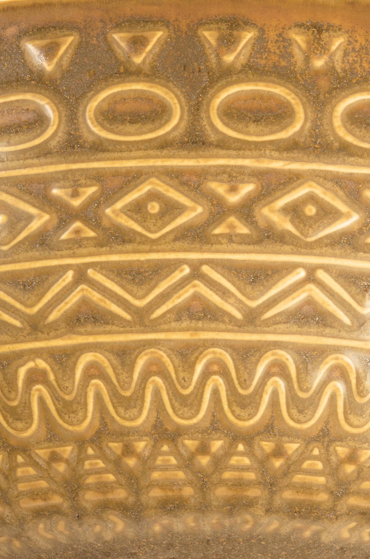 This handcrafted small stoneware bowl features a stamped zebra design on the inside and an artisanal pattern on the exterior, finished with a yellow reactive glaze. Each piece is unique, showcasing subtle variations in color and texture that highlight its handmade charm. Perfect for snacks, jewelry, or as a decorative accent. Microwave, dishwasher, and food safe.